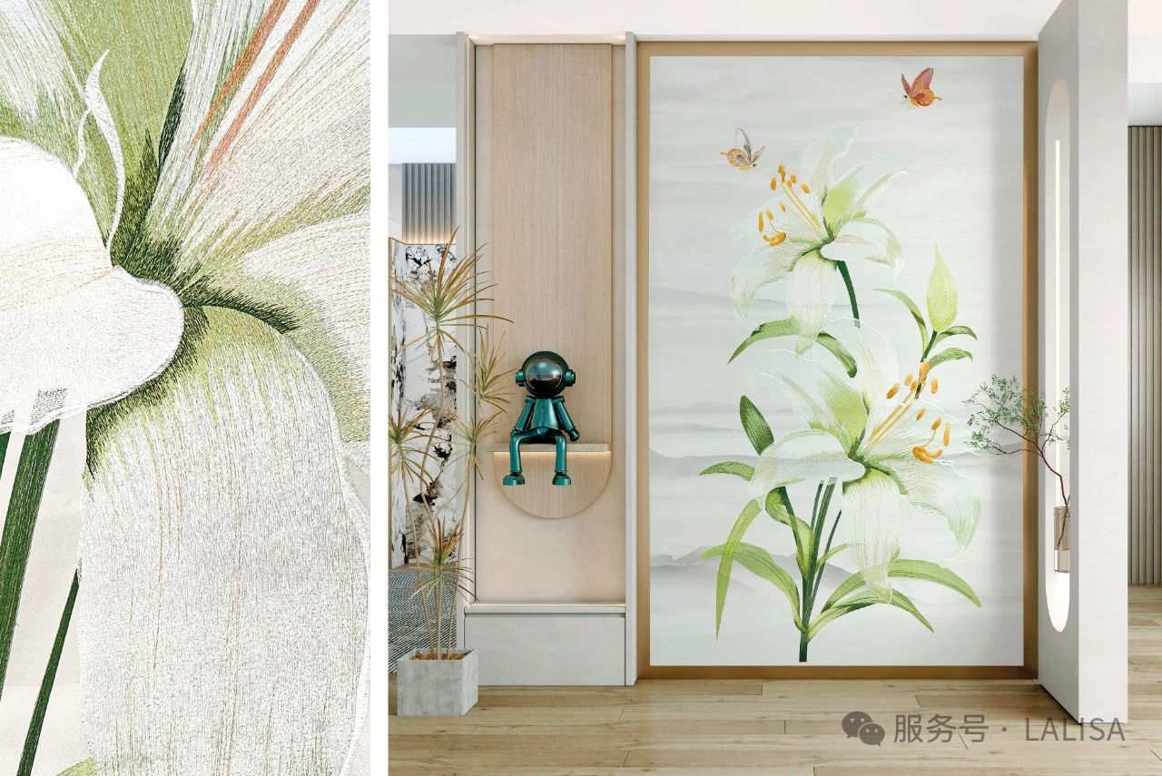 在追求個性化的時代,墻面裝飾的設(shè)計(jì)風(fēng)格也需要與時俱進(jìn),滿足不同消費(fèi)者的審美需求。萊麗莎擁有全球 20 多個國家的 30 多個知名設(shè)計(jì)師團(tuán)隊(duì)組成的設(shè)計(jì)機(jī)構(gòu),每年為其提供 300 多款原創(chuàng)設(shè)計(jì)花型。無論是當(dāng)下流行的自然極簡主義、新中式復(fù)古,還是經(jīng)典的歐式風(fēng)格、美式風(fēng)格、輕奢風(fēng)格、法式等風(fēng)格,萊麗莎壁布都能完美呈現(xiàn)。繁花似錦的圖案,仿佛將春天的花園引入家中;古典雅致的設(shè)計(jì),彰顯出優(yōu)雅氣質(zhì);現(xiàn)代簡約的刺繡風(fēng)格,展現(xiàn)出簡潔而不失精致的生活態(tài)度。每一種色彩都經(jīng)過精心調(diào)配,不僅與家居風(fēng)格完美融合,還能在不同光線下展現(xiàn)迷人變化。萊麗莎壁布用精湛的刺繡工藝,為家居裝飾增添藝術(shù)魅力,讓家成為一座私人藝術(shù)殿堂。