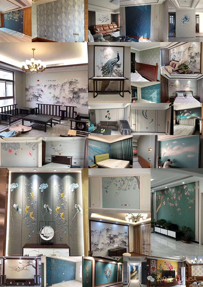 其他工藝:萊麗莎壁布綜合刺繡、提花、印花等工藝,為消費者提供豐富多樣的選擇。產(chǎn)品經(jīng)過嚴(yán)格的制作流程,從圖案設(shè)計、描稿、計算機制版、織物繡花等十多個技術(shù)程序,歷時 3 個月以上,反反復(fù)復(fù) 100 多次打樣,還需要施工論證、色彩調(diào)純,以達到極致。